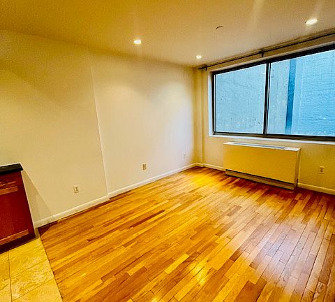 Sunny one bedroom apartment with entrance foyer, living room and pantry closet. Marble kitchen features Stainless Steel Appliances-Refrigerator, Gas Stove, Dishwasher & Microwave. Separate granite bathroom with window. Queen size bedroom. Two large closets. Two Central Air Conditioners in the apartment. ROOFDECK, PET FRIENDLY & NO FEE APT.