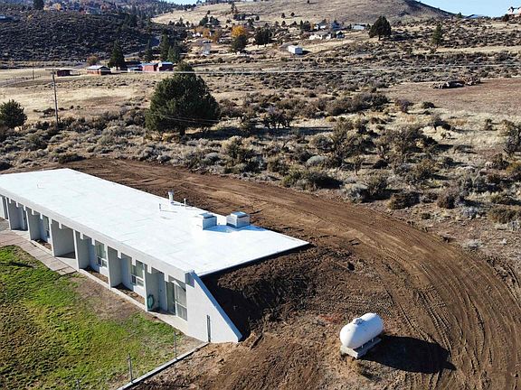 Unique Earth Shelter Home with Breathtaking Views! This 3 bedroom 2 Bath home with a 2 Car Garage on 1.71 Acres has been thoughtfully designed to provide exceptional energy efficiency. It's unique construction naturally regulates indoor temperatures, reducing heating and cooling costs year-round. Interior has all new paint and durable concrete floors that are not only appealing but also contribute to the home's energy efficiency by retaining and radiating heat. Kitchen has some new appliances and a On-demand hot water heater just for the kitchen. There are two additional hot water heaters in laundry room, one is propane and one can be heated by the wood stove. Exterior: New Duro-Last Roof being installed by a licensed Roofing Contractor and front of house has new acrylic stucco. This place has potential for personalization whether you envision creating lush gardens, installing solar panels, or building an outdoor oasis, the possibilities are endless. You can relish the beauty of nature right from your doorstep with views of Diamond Mountain and the Valley beyond. Don't miss this rare opportunity to own a home where you can design your own tranquil haven!