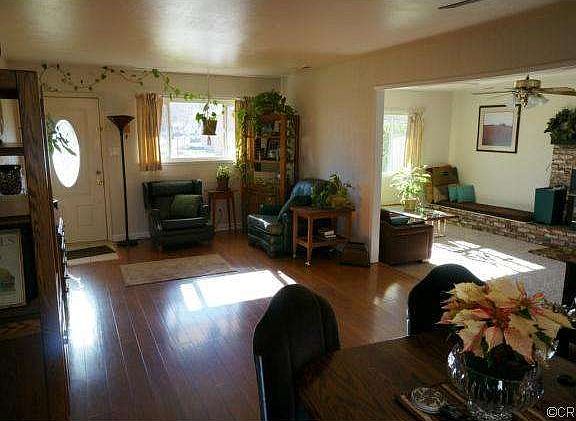 Well maintained house on nice corner lot with spacious front and backyards as well as matured fruit trees in the back and large trees in front that provide great shade. Home offers wood laminate flooring and carpet throughout and dual pane windows. Great family room with brick fireplace, detached garage, indoor laundry, and an updated kitchen you won't find in this price range. Close to schools and shopping.