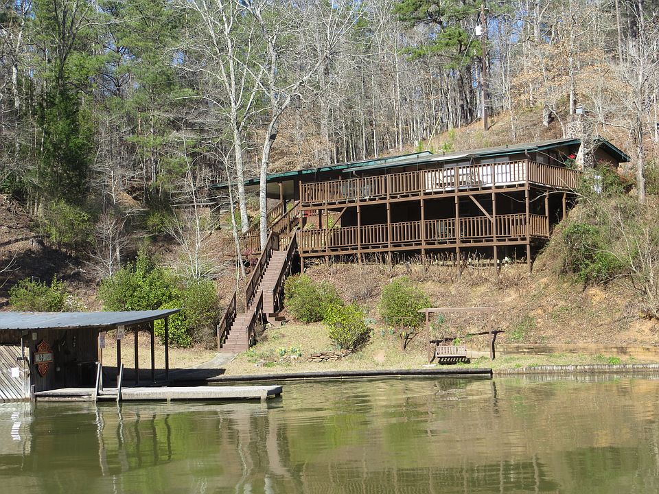 Cute 2BR/2BA lake cottage! Central Heat & Air Beautiful updated bathrooms and kitchen! Stone wood burning fireplace with gas starter Carport Very large Master Suite Lots of outdoor living areas - covered porch and open decks 2 stall boathouse - one electric lift Huge lot with 5+/- acres of land - lots of privacy Paved roads County water Concrete driveway - stone column entry About 9 miles from exit 208 on I65