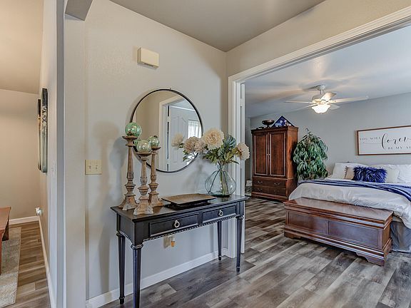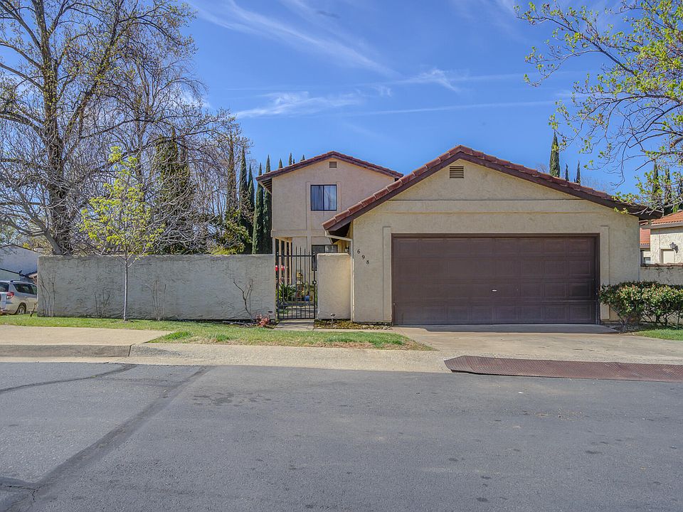 Beautifully renovated Redding home centrally located on a cul-de-sac street minutes from shopping, schools & the amazing Highland Park! This 3 bedroom, 2.5 bathroom home features a grand downstairs owner's suite featuring new laminate flooring, fresh paint, large closet and an en suite bathroom. The living room features a dramatic vaulted ceiling, dining area and gas fireplace. The remodeled kitchen is spacious and has a breakfast bar and breakfast nook. Upstairs you will find two more bedrooms and a full bathroom. The property is meticulously landscaped and even has fruit trees! There are two brand new Trex decks off the Kitchen and Living Room to enjoy the sunsets on. There is a 2 car garage and plenty of off street parking. Make sure to take a peek at the community pool, spa and sauna!