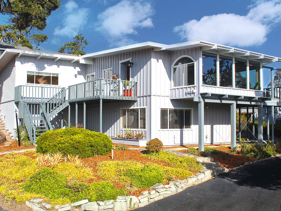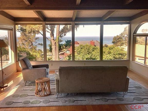 This is the ultimate beach home, with a cool retro vibe, completely remodeled for today's tastes. The home feels like it sits at the edge of the world with a gorgeous ocean view and a scattering of trees. The home is completely open with the living room occupying the westernmost end, encased by floor to ceiling view windows. An incredible kitchen is dressed with honed marble counters, designer tile backsplash, stainless steelThermador appliances and long eating bar. Adjacent is a dining area with fireplace and glass tile surround reaching from the French oak floors, to the painted white wood beam ceilings. Two bedrooms are on this main level. Downstairs is a very large family room with living area, game table area and gas fireplace. There is also room for an additional guest bed plus there is a 3/4 bathroom and large mud/laundry room with custom dog bath. Decks with ocean views surround the home. In the back is a fenced area for pets, 2 car garage and large driveway providing additional off-street parking. This home is approximately 3 blocks to the sea and the Fiscalini Ranch Open Space Trails. It is an incredible home in an amazing setting.