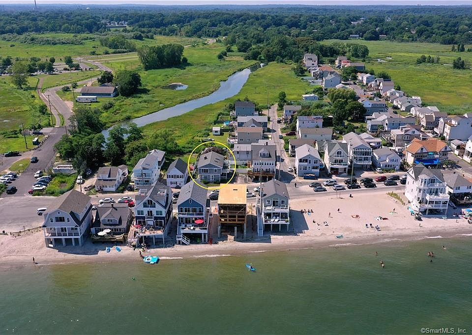 Enjoy the beach life and views from this beautiful 5-bedroom, 4-full bath Hi Ranch located across from Silver Sands Beach. This unique home offers a potential in-law suite located on the 1st floor and includes a living room, full bath, kitchen, dining area with French doors leading to a deck and a bedroom with a stackable washer & dryer in a closet. Just down the hall an additional bedroom & full bath with laundry area is also located on the 1st floor. Head upstairs to the main living quarters where you’ll find a sunken living room with a gas stone surround fireplace. The eat-in kitchen has been recently updated and features refaced kitchen cabinets, quartz countertop, tile floor, skylight and a slider leading out to an expansive deck with fabulous unobstructed water views. Enjoy sunrises from the master bedroom with another slider leading to the expansive deck. The master bath has recently been renovated and includes a tiled open-air shower with dual shower heads, new vanity with dual sinks, tile floor and a skylight to bring in the natural light. Two closets w/new frosted glass doors and new carpeting complete the master bedroom. Down the hall is another updated full bath with a tiled stall shower and floors along with a single sink vanity. Two additional BR's w/hardwood floors are also located on this floor. The fenced-in yard provides ample space to entertain and off-street parking is an added bonus in this beach community. Flood insurance is $2,200 per year.
