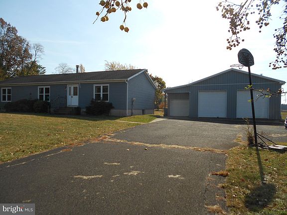 This home features living room with wood burning fireplace, dining room with sliders to covered patio, kitchen, large master bedroom with full master bath, 2 more nice size bedrooms and full hall bathroom. New carpeting, electric baseboard heat, central air conditioning, full basement with sink, high ceilings, and OE so ready to be finished (some drywall already completed), rear covered patio with nice view of open space beyond the backyard, private water & public sewer. 32 x 30 pole barn (2011) with car lift and two 9'W x 9'H overhead doors plus an additional 2 car attached garage. Home does need remodeling in particular kitchen and master bathroom but can be a real gem. This is an estate property and being sold in 'as-is' condition. Convenient location close to Rt. 309, 212, & 412.