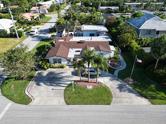 Rarely available oversized corner lot on .28 acres EAST of Federal Hwy. Located directly across from canal just off the intracoastal, which means building up may potentially provide water views. Custom build with a total of 4 bedrooms & 5.5 bathrooms. Main house consists of 2 bedrooms & 2.5 bathrooms along with a connected efficiency apartment with full bath & its own private entrance. Large covered patio provides additional living space with a built-in summer kitchen. Second building consists of a cabana bath for the pool & also a separate 1 bedroom efficiency apartment with full kitchen & private bath. Covered walkway connecting the 2 buildings. Corner lot provides 2 separate driveways. Property is immaculate & well maintained. Lots of potential for a family wanting some separate spaces or additional rental income with 2 separate efficiency apartments. Truly a unique opportunity! Impact Windows. Brand new floors. Roof is from 2020. Newer Kitchen Appliances. A/C's are 2019/2014. Guest House or Mother-in-law Suite is only 4 years old. RV and/or Boat Separate Gated Parking. Video Walkthrough Tour Attached to listing.