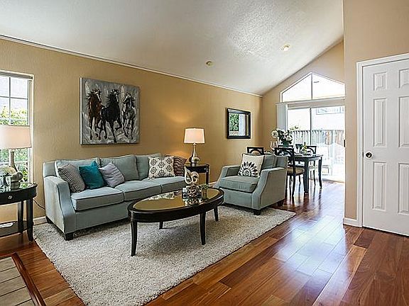 Gorgeous home in prime & quiet neighborhood. Beautiful engineered hardwood floors in living room & staircase, new interior decorator paint, recessed lighting, A/C, granite kitchen countertops, newly painted kitchen cabinets, high ceiling w/ fireplace & lots of natural light. Large master bath w/ cultured marble counters & large tub. Huge backyard w/ patio. Walk to park, great schools (k-12) & situated next to green belt w/ jogging path. Easy access to main roads & freeways. Staged & shows like a model home