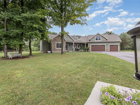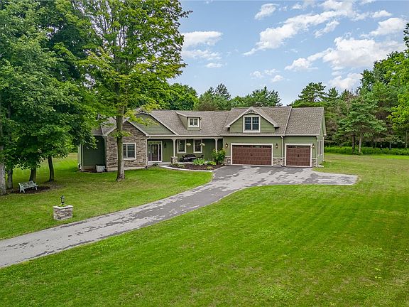 A TRULY RARE OFFERING IN WEBSTER. Newly built Ranch on 3 Wooded Acres! The property is basically surrounded by nature & abundant wildlife! Bike, Hike or Walk the trails of the Gosnell Big Woods Preserve, Herman Road Forever Wild Forest & Whiting Road Nature Preserve. You'll find a vast mature forest & a dense trail network (dog friendly) where you can hike, bike, run, cross country ski, or snowshoe your way all the way to the Lake! The peaceful & serene setting this residence is built on is loaded w/the features you want! Magnificent curb appeal w/open & inviting front porch. Easy living floor plan w/impressive primary suite & great INDE designed cooks' kitchen. Huge, eat-in island w/breakfast bar, pull out pantry & coffee bar w/built-in water line. Smart, Alexa "on demand" lighting! Soaring ceilings & skylight fully optimize the spacious gathering room. A wall of windows along the rear house overlooking private backyard & rear porch. Heated floors in bath & shower. Very well appointed, light & bright interior design. Outside, 2 of the 3-acre parcel is mowed w/1 acre remaining wooded. Visit during Open Houses, BOTH Saturday & Sunday 12:30-2pm. Delayed Negotiations Tuesday 7/16 @5pm