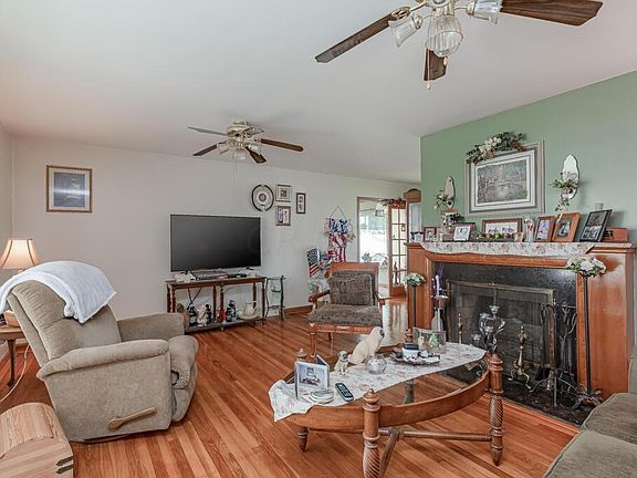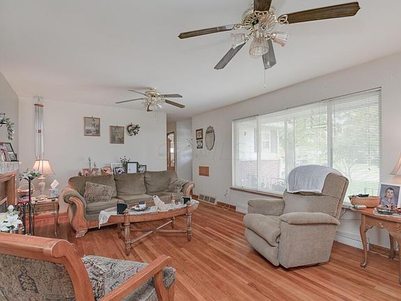 Beautiful and well maintained ranch home with attached garage, fenced yard, covered porch, patio, mature trees and beautiful landscaping. Hardwood floors throughout. Tile floors in the kitchen, bathrooms and four season room. Several beautiful built ins cabinets Spacious family room with fireplace and large window. Eating space with a lovely view of the backyard. 4 season room with french doors, Updated kitchen. Owners Suite with private bathroom Finished basement with bar in the rec room, family room and play room/office, a large storage area with plenty of cabinets and work space.
