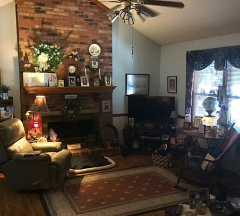 This is one house that feels like "home". This home is located on corner lot with fenced back yard that houses a beautifully flowered yard. It has 2 storage units, well that waters front and side yard, side carport, front porch and screened back porch that has mount for outside TV. Updates to home includes Roof replaced 2016, HVAC replaced 2017, updated vinyl windows, new master shower, and granite counter tops in kitchen. It also offers Cathedral ceiling in Greatroom with brick fireplace, Breakfast area with bay window, Kitchen with work island, gas range, hot water heater, dryer and gas logs. (Natural gas) Laminated flooring in Greatroom and new carpet in bedrooms. This is a must see to appreciate.