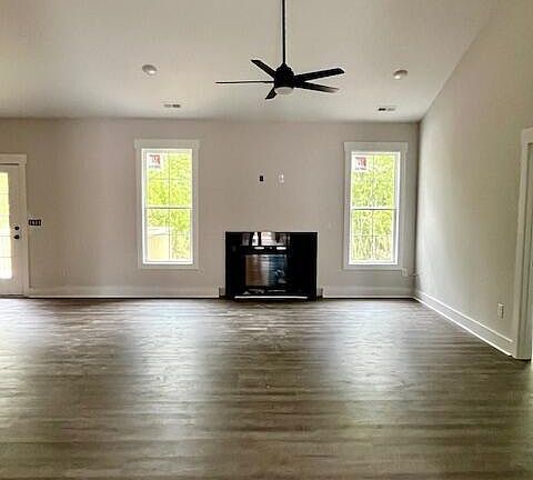 Discover comfort and style in this beautiful new home in Hampstead. Featuring 3 bedrooms and 2 bathrooms, this well-appointed design is a perfect blend of luxury and functionality. Step inside the open foyer and into the spacious great room, where a gas log fireplace and vaulted ceilings create an inviting atmosphere. The adjacent dining room seamlessly transitions to the impressive kitchen that offers white shaker cabinets contrasted by a gray island and quartz countertops. Stainless steel appliances including refrigerator and a walk-in pantry are also included for convenience.