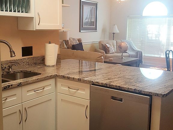 What more could you ask for this fully furnished, 1st floor condo has awesome views of the 5th tee box @ Arrowhead Golf Course & ICW! Completely remodeled with top of the line LG stainless appliances, granite countertops, real wood 36" cabinets, washer/dryer, large ceramic tile flooring, hardwood floors in living/dining areas, and so much more!! Enjoy your mornings or evening on with amazing golf course and ICW views from the screened porch. Rent includes basic cable, water, sewer, trash, and amenities including indoor & outdoor pools and fitness center. No pets per HOA