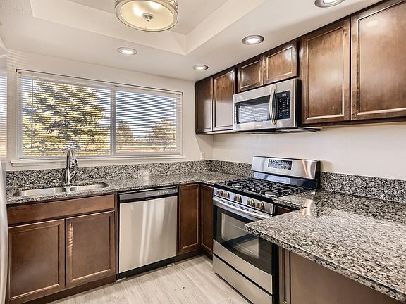 Some of the photos have been staged. Ranch Style living.. no stairs! This property backs to Belmar Park with views of the park from the kitchen windows and Master Bedroom! Walk the trails in the park, Whole Foods, King Soopers, Retail, Shopping, Theatres and Restaurants. The Library is located also just across the park from the Unit. I'm Updated and gorgeous! New cabinets, granite countertops, stainless steel appliances, Gas Stove, New paint, New Carpet. New Bathroom, New Windows and Beautiful full glass oversized sliding glass door that leads out to your private covered patio with storage unit and out the gate to your 2 private Carport spaces! A/C. Zillow has a fireplace listed on this property which is incorrect. There is no fireplace in the unit. Renters must have a 700 or better credit score to be considered for this property. Please do not inquire unless your score is above this number. If you score is at or above this number, please submit your application on Zillow if you are interested in renting this unit. Renter responsible for electric and gas. No smoking allowed in the unit or outside of the unit. Pets negotiable but will require an additional non refundable pet deposit. Two car carport and on street parking.