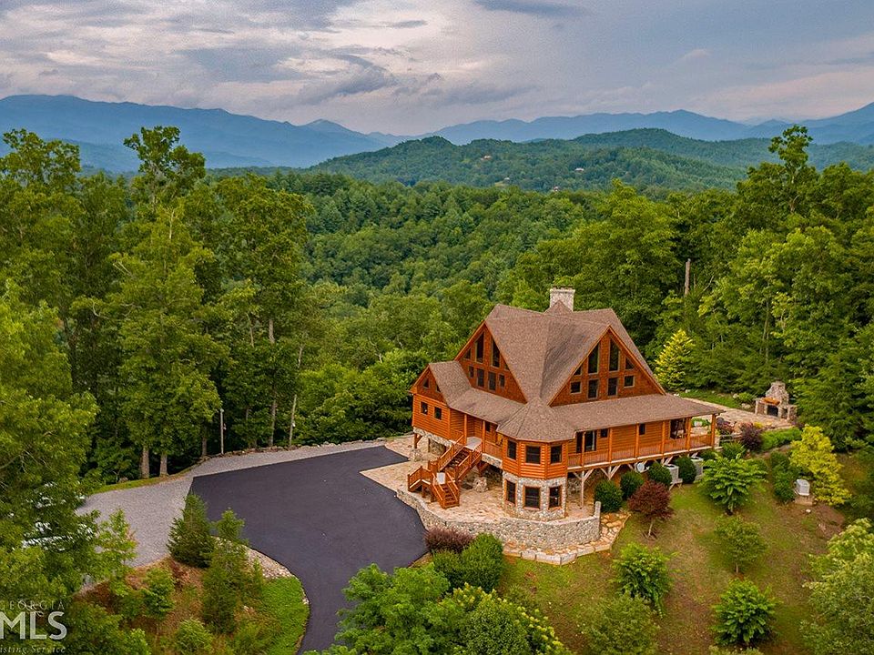EXQUISITE PRIVATE CUSTOM BUILT 1/2 LOG CEDAR SIDED home on 3 beautifully manicured acres & stunning mountain views! No detail spared in this 4 Bedrooms, 3.5 Bath home offering many finer finishes including a mix of wood & stone flooring, four stone fireplaces, elegant lighting & hand carved wood pillars. Large gourmet kitchen includes custom cabinetry, granite counters, stainless appliances & Wolf gas stove. Spacious master suite with private en-suite includes soaking tub & separate shower. Guests enjoy total privacy on the terrace level with handicap elevator. The grounds are an endless playground of covered decks, stone patios traversing to a stone fireplace. Prompt viewing recommended for this mountain sanctuary!