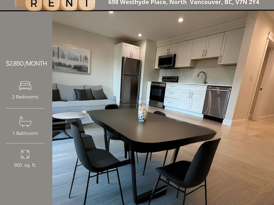 Price: $2850 Sq Ft.: 900 sq. ft. Bedrooms: 2 Bathrooms: 1 Furnished: No Parking: Street parking Utilities: $200/month Pets: Yes Description: Spacious and stylish, this newly built 2-bedroom, 1-bathroom unit offers over 900 sq.ft. of living space with sleek stone flooring throughout. Enjoy the convenience of ground-level access, just steps from Edgemont Village, Delbrook Rec Centre, and scenic trails. A rare opportunity to live in one of North Vancouver's most desirable neighborhoods! Move-in Sept 15th Tenancy Length Required: 1 Year Tenancy Insurance Policy Required: Yes Move-In Fee Applicable: No **PLEASE REPLY to arrange a viewing. Let us know: 1. Do you have a pet? 2. Desired Tenancy Start Date? 3. What is your Employment Status? 4. How much is your annual income? 5. How Many Occupants? 6. Contact Email & Cell Phone Number? Online Application Form: Visit Our Website saferent .ca Property Owners: Contact us at Melissa Safe Personal Real Estate Corporation for inquiries. This listing is listed by Coldwell Banker Prestige Realty