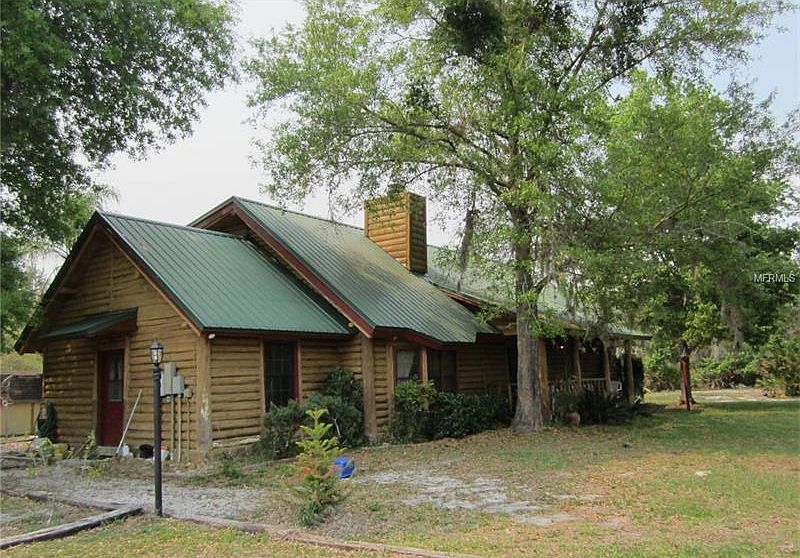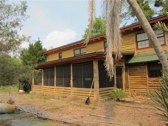 A true log home on 10+ acres in a perfect gated community, backing up to a 7000 acre park great for riding horses. This comfortable cypress log home has a wonderful floor plan with 4 bedrooms, 3 baths, huge 12x16 laundry/exercise room, dining, living, loft and breakfast nook (ideal office). Enter the front door and be prepared for a gorgeous view-soaring wood ceiling with hewn cross beams and a matching staircase with the hewn cypress beamed supports leading up to the open loft-all anchored by the floor-to-ceiling river rock fireplace. If you love log homes this is it!! There are two bedrooms and a bath on the main floor, each with a log wall and a sheetrock wall making for a lighter look but keeping the log home feeling. Upstairs master and another bedroom & bath separated by 16x13 loft area overlooking the living room below. The floor plan and the space in this home is terrific. The breakfast nook off the kitchen is ideal and could be an office as well. Nice front porch and BIG screened back porch-perfect for watching the deer wander by. Double pane wood windows conserve energy. This 10 acre parcel is completely fenced. The older pole barn has water and electric. This small gated community is A+ and every home is on acreage. A quiet sanctuary yet convenient to Orlando & Lake Mary.