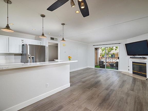 Clean, Move-In ready unit in prime location. Renovated kitchen features quartz countertops, recessed & pendant lighting, new refrigerator, new dishwasher, gas stove/oven and microwave. Enjoy the living room fireplace and abundance of natural light from the large glass sliders that open onto the covered patio complete with storage closet. Unit comes with the huge advantage of having a garage parking spot and one assigned parking spot at front door level. Additional private storage locker on side of garage. New LG stackable washer & dryer. Community offers pool / spa, gym. Prime location just blocks from top-rated La Costa Meadows Elementary, close to Bressi Ranch, Carlsbad beaches and over the hill from Cal State San Marcos University & Kaiser Hospital.