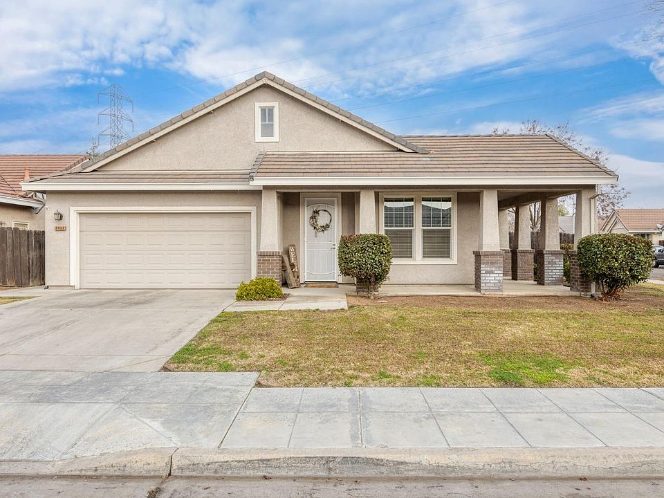 Welcome to this beautiful single story home in southeast Fresno! This 2007 home sits on a corner lot and features 3 bedrooms, 2 bathrooms, an open concept living area, and an extra room off the entryway. The home has a nice sized backyard with a lemon tree and large side yard, and backs up to an open green space. Other features include stainless steel appliances in the kitchen, a large walk-in closet and soaker tub in the master bathroom, a finished 2 car garage, tile roof, mature trees, and solar! This move-in ready home has been well maintained and is ready for it's new owner!