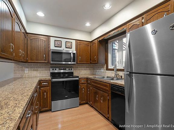 Main floor has a big kitchen, dining area, large size living room, 2 bed rooms 2 full bathrooms and a wonderful peaceful all season covered room. Basement has mini bar area, huge living room, 3rd bedroom and a 1/2 bath. Huge storage space. Comes with all appliances including washer & dryer. Kitchen has back-splash, stainless steel gas range, stainless steel microwave, dishwasher and fridge.