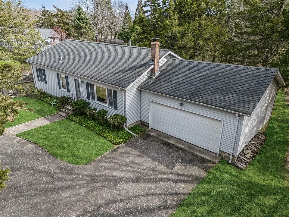 Welcome to Southold, North Fork: An enchanting opportunity awaits at the Leeward Acres subdivision, a charming open-plan ranch nestled on a shy acre opposite serene woodlands and just moments away from over 50 acres of scenic trails at Reese and Wolf preserves. This delightful home is perfectly positioned between the vibrant village of Southold and the inviting shores of Cedar Beach. As you step through the entry foyer, you'll be greeted by a warm living room with vaulted ceilings adorned with a cozy wood-burning stove nestled in a classic brick surround. The dining room beckons with a sliding door that seamlessly connects to a beautiful garden patio, perfect for al fresco dining or relaxing in the fresh air. The expansive kitchen offers convenient garage access, making daily life a breeze. Retreat to the owner’s suite, a tranquil escape featuring a full private bath, while two additional bedrooms and a well-appointed hall bath provide ample space for family and guests. A full basement adds even more potential to this inviting abode. The large, level lot is a canvas for your dreams—whether you envision lush gardens, aspirations of horse ownership with Forestbrook Preserve's riding trails just up the street, or even the installation of a stunning pool. And let's not forget, the beach is just around the corner, ready for sunny days and seaside adventures. Transform this solidly built home into your personalized haven, where your unique style and vision will truly shine. Welcome home!