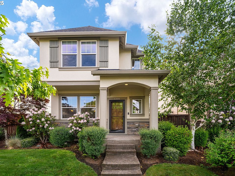 Welcome to this beautifully maintained 3-bedroom, 2.5-bath home, ideally situated in the heart of the highly sought-after Bethany Creek Falls community—just minutes from Nike, Intel, and top-rated schools. Perfectly positioned across the street from Bethany Creek Park and near the community center and pool, this home enjoys one of the most desirable locations in the neighborhood—with exclusive access to amenities not available to all residents. Inside, you'll find an open-concept floor plan featuring rich hardwood floors, sleek granite countertops, and stainless steel gas appliances—perfect for both everyday living and stylish entertaining. The spacious kitchen flows seamlessly into the dining and living areas, filled with natural light and thoughtful design touches throughout. Upstairs offers three generously sized bedrooms, including a luxurious primary suite with a walk-in closet and private en suite bath. A full guest bathroom and a conveniently located laundry room complete the upper level. Outside, enjoy year-round low-maintenance living with a fully fenced backyard featuring upgraded artificial turf—ideal for pets, play, or quiet relaxation. The HOA maintains the front yard landscaping, ensuring curb appeal with ease. Additional features include an attached 2-car garage, cozy gas fireplace, energy-efficient systems, and a charming covered front porch. With Bethany Creek Park, Bethany Village Shopping Center, restaurants, coffee shops, and major tech campuses just moments away, this home offers the perfect blend of suburban tranquility and urban convenience. Don't miss your opportunity to live in one of Bethany's most vibrant, connected communities!