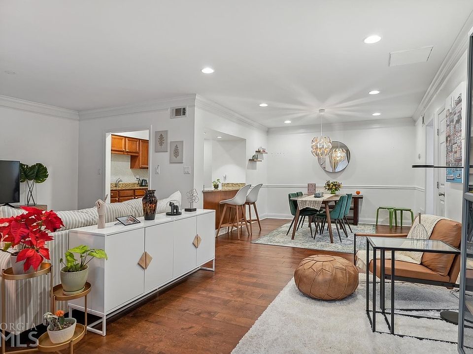 This is your opportunity to get into a beautiful 2Bed/2Bath condo in the heart of Sandy Springs for below market value!!! On top of that, Sellers are offering $10,000 credit towards closing to buy down interest rate! Talk about a hidden gem and Affordability!!! This condo is in a gated community for your safety. It offers a spacious open floor plan with beautiful hardwood floors throughout the main living area. The kitchen is updated with tile floors, stainless steel appliances, granite countertops and a breakfast bar. You will also have a dining area for your formal dining table. This is a perfect layout for entertainment! Walking down the hall you will find a stack up laundry room for your convenience, both bedrooms and bathrooms, one being a master with a walk-in closet. The outdoor patio is currently going through renovations, but you will have a nice brand-new private patio once it's completed. The community offers amenities such as swimming pool, gas grill, gym facility, clubhouse. Wonderful location! Very close to shopping, restaurants, and entertainment, close to Marta & easy access to 285/400. Near Sandy Springs City Center and Abernathy Greenway & Park. This community is not FHA approved. Showings to begin on Saturday, Jan 7th. Agents, please see private remarks about this special condo.
