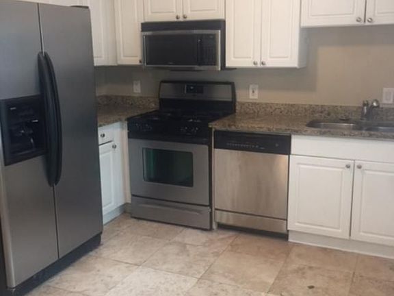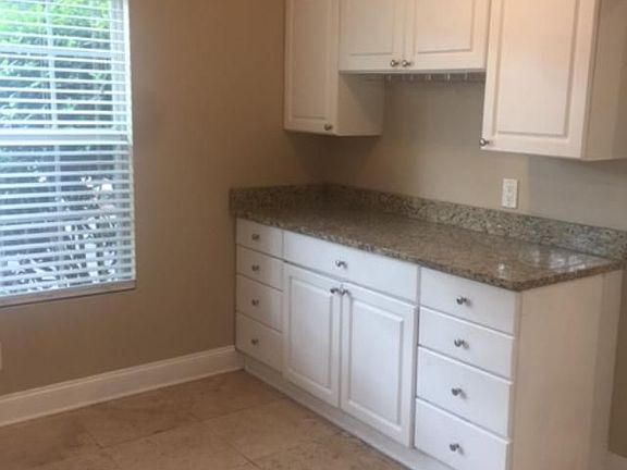 - Kitchen Features: Cabinets White, Breakfast Area, Counter Top - Stone