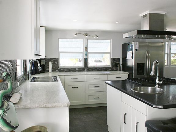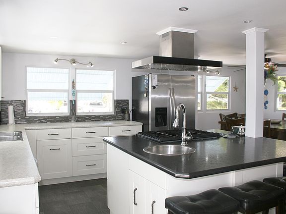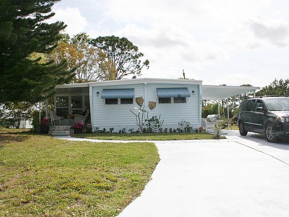 Completely remodeled GORGEOUS doublewide on 1 1/2 lots (75X125) in Ridgeway, all ages park in Hobe Sound. New AMS Roof 2016, New A/C w heat pump 2016. New electrical & lighting (LED), all new PEX plumbing, all plywood subfloors, attractive vinyl flooring throughout, new hot water heater 2019, new windows, new insulation - low electric bills!! This home has it all. BRING YOUR BOAT/RV. 3 sheds. The kitchen is a cook's dream w large cooking island & New shaker cabinets, stainless appliances & incredible storage. It is truly the center of the home. The glassed in Lanai & charming front porch add to the flexibility of living areas. The large Master Bedroom is an Oasis - light & bright w creative lighting options galore. The Master Bath is stunning w step in shower & door. MUST SEE. CASH only!