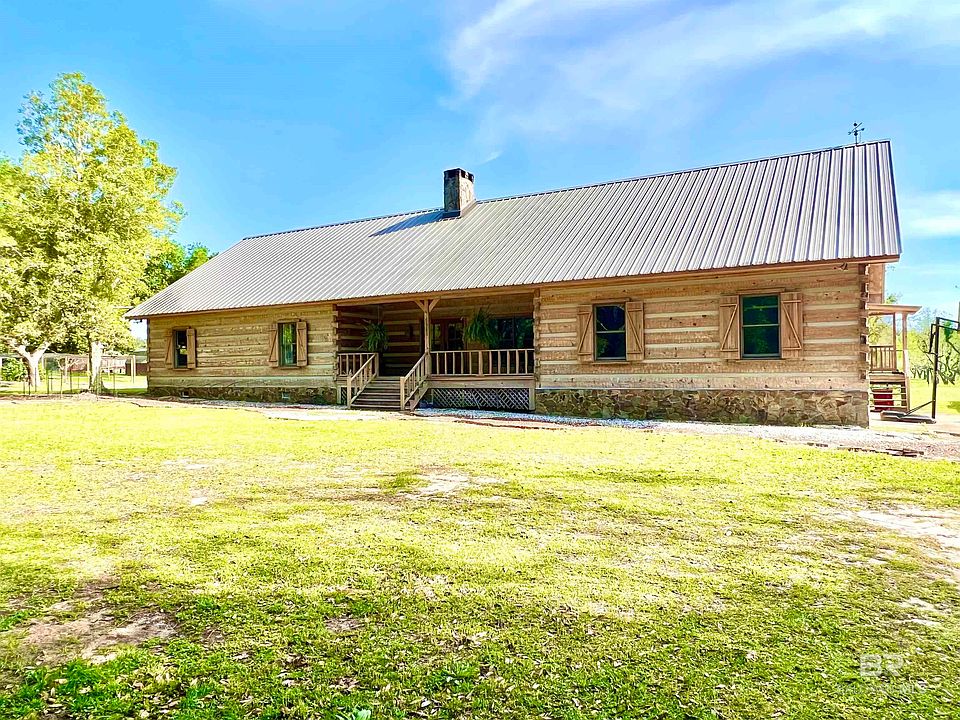 Unique one of a kind opportunity to own a spectacular log cabin in the beautiful countryside of Fairhope, Alabama! This is a 1.2 acre property surrounded by beautiful lush natural landscaping. Upon entering this home you will be overwhelmed by the magnificent woodworking throughout. Cozy up by the stone fireplace on cool nights and spend summer nights on the porch overlooking nature. Bedrooms abound in this 6 bedroom 3 bathroom plan. The owner's suite is enormous and leads out onto the back porch. The eat in kitchen is any chef's dream with cabinets galore!! Outside you will find plenty of room to roam. Your chickens will be in chicken heaven with the massive chicken coop located on this property!. Inside the coop is a fig tree and the coop is covered with gorgeous grape vines. You do not want to miss this home. It is truly amazing! Brand New Fortified Roof!!