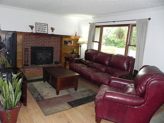 Great Opportunity on a well maintained one story 3 Bedroom and 2 Full Bath home on 1.5 acres with mature trees, upgrades through out the whole home. Large LL Theater Room/Rec Room w/new flooring & more, plus two additional rooms in the finished LL, as well as two large storage rooms. Recently in the LL, a room has been framed in, to become a 3rd Full Bath. Updated Kitchen offering new s/s appliances, ceramic tile flooring, beautiful cabinetry and newer counters. Recent three dimensional roof, water softener, iron filter, new well pump, crown molding throughout, new lighting fixtures in many rooms, woodburning stoves in LL & in LR. Deck, patio, fenced in area, concrete driveway and a 3 car garage ( 2 door ) w/ custom flooring and built ins. Storage shed on the back of the property.