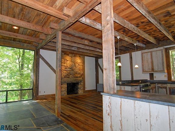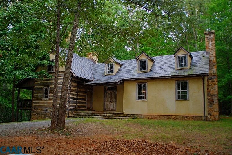 Batesville hand-crafted masterpiece on 6 acres with modern 2007 construction by master builder Peter Hunter. Home is built around an 18th century log cabin brought in from nearby which sets the mood for ultimate Albemarle County country living. Reclaimed materials include post and beam timbers, slate roof, soapstone flooring, casement windows complimented by copper gutters, massive stone chimneys, heart pine flooring, marble shower, antique light fixtures...