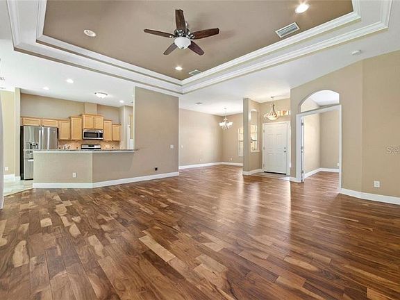 - Interior Features: Ceiling Fans(s), Eating Space In Kitchen, High Ceiling(s), Open Floorplan, Split Bedroom, Walk-In Closet(s), Crown Molding, Thermostat, Kitchen/Family Room Combo, Window Treatments, Tray Ceiling(s)