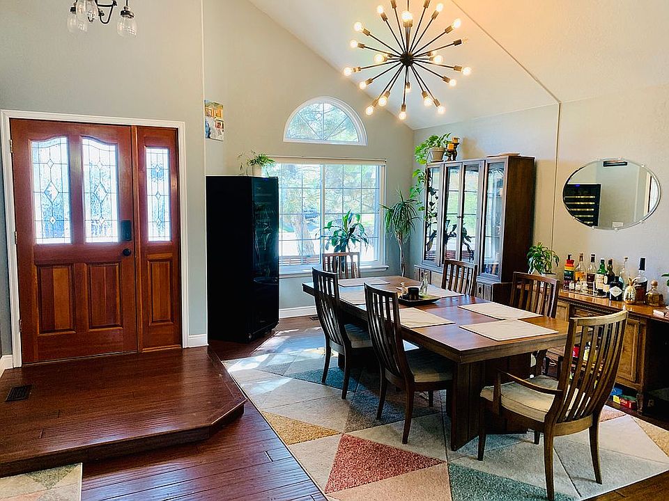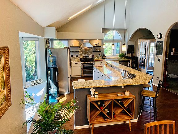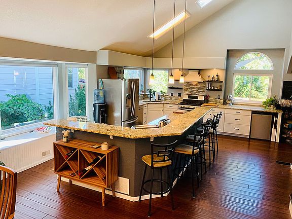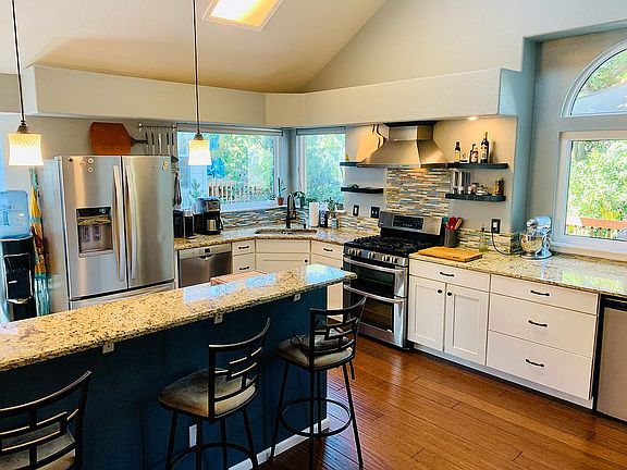 Renovated to reflect a welcoming open main floor plan. Situated amongst mature trees and vegetation. This house boasts many areas to reflect, chill and enjoy your chosen oasis. Pick from a window nook in the kitchen, quaint sunroom off the family room, basement bonus room with fireplace or the flex room off the master, perfect for yoga or reading. An extra wide wooden stair case leads to the master and 2 bedrooms. The scenic 3rd floor deck off the master bedroom is rapt to enjoy a quiet cup of coffee. Each bedroom has a window seat with storage space. The bamboo & tile main floor surrounds an updated kitchen adequately situated for family meals or entertaining. Stainless steel appliances, granite countertop, soft close cabinets & pull out drawers. Nestled amongst the cabinets is a 2 tap kegerator. In the great room your eye is immediately drawn to the built in shelving and stone fireplace. The basement contains three separate bedrooms/office/craft room ~ pick your purpose or enjoy a central space illuminated with a fireplace and access to the outside hot tub.