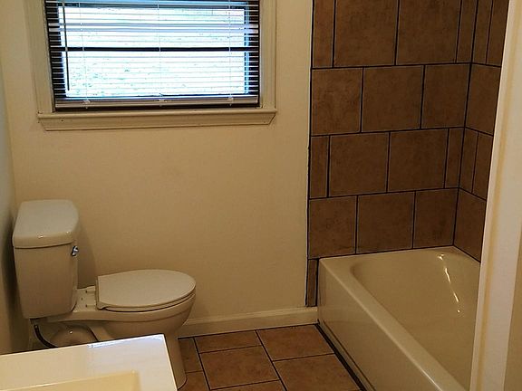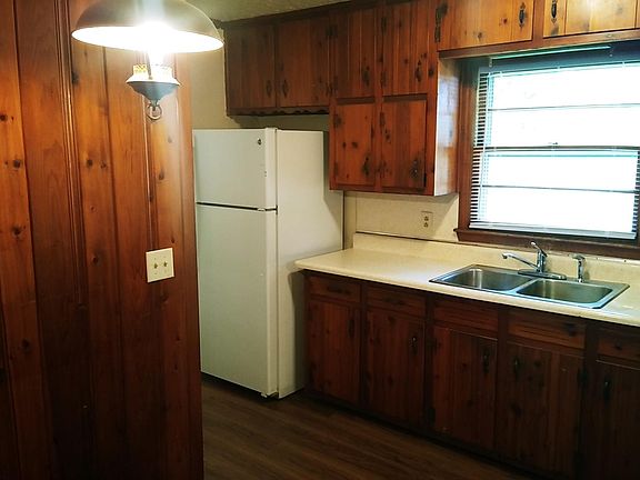 This house features three bedrooms, one full bath, one 'Jack and Jill' half bath, an open kitchen connected to a dining room / den area, large living room with hardwood floors, separate laundry room, large fourth bedroom or den, utility room, sliding door with covered patio, large fenced backyard and two free-standing storage sheds. The house has HVAC, tile in the bathrooms, alarm system and a whole-house fan. The house is very large and is in great condition!