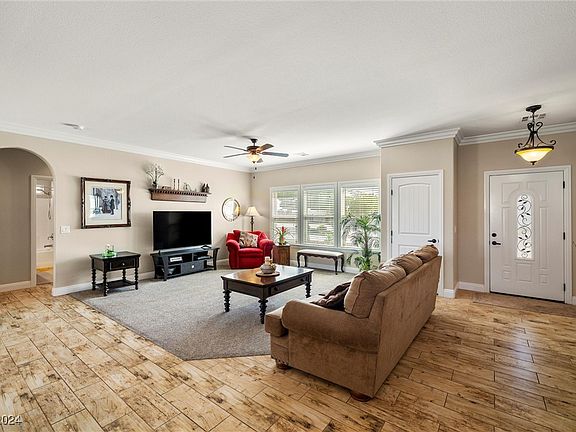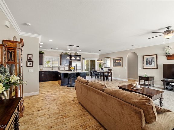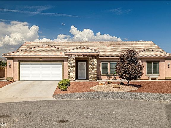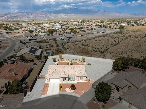 Presenting your dream home in Artesia, Pahrump! This charming single-story residence boasts upgraded crown molding, a spacious kitchen, and an open floor plan. Revel in stunning mountain views, nearly 1/2 acre of land, gated RV parking, a luxurious deep soaking tub, and picturesque gardens. Unwind on the extended patio and retreat to the large primary bedroom with 3 beds and 3 baths. The second bedroom features its own private bathroom. With an extended garage and upscale features, this home offers the perfect blend of comfort and sophistication in a highly sought-after community. Don't miss this exceptional opportunity!