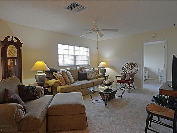 Updated and Spacious 3 bed, 2.5 bath Villa with attached 2 car garage and one of the best lake views in Myerlee Country Club. This end unit features an open floor plan with living room, formal dining room, large Florida room, master bedroom w/two closets, and master bath w/handicap accessible shower. Updates include: new carpeting, updated appliances, new master bath vanity, new interior paint, and new toilets. Additional features include air-conditioned Florida room with tranquil lake views, roll down hurricane protection on all windows, 2 additional guest parking spots, full guest bedroom, full guest bath and a 3rd bedroom with en-suite half bathroom. Excellent location in South Fort Myers with easy access to shopping, dining, beaches and airport. The Myerlee Country Club has affordable annual/seasonal golf and social memberships available separately. Enjoy the great outdoors in this quiet 55+ community that offers a large Olympic size pool, Community Room, Tennis and Shuffleboard.