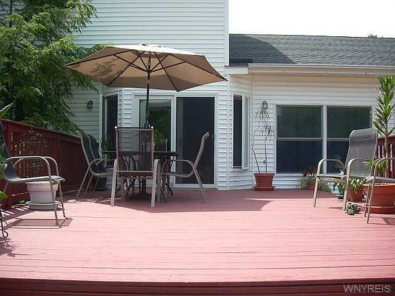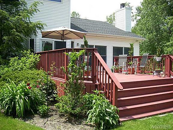 Well cared for and conveniently located(Transit Rd/990) Colonial home with full front porch on a beautiful private lot overlooking a large wooded yard. Updated landscaping and 2 tier deck. 1st flr den with brazilian cherry hdwd flrs. 1st flr features 9 ft ceiling and 6 panel drs. Large maple cabinet kitchen with island/breakfast bar along w/eating area overlooking cathedral ceiling fam rm with fpl and home theater system. Mstr Br features tray ceiling and vaulted ceiling bath. Roof 2013 with ice/water shield. 1st flr laundry. Central air and vac. 8ft bsmt. Generator ready. Taxes $8444 w/Star
