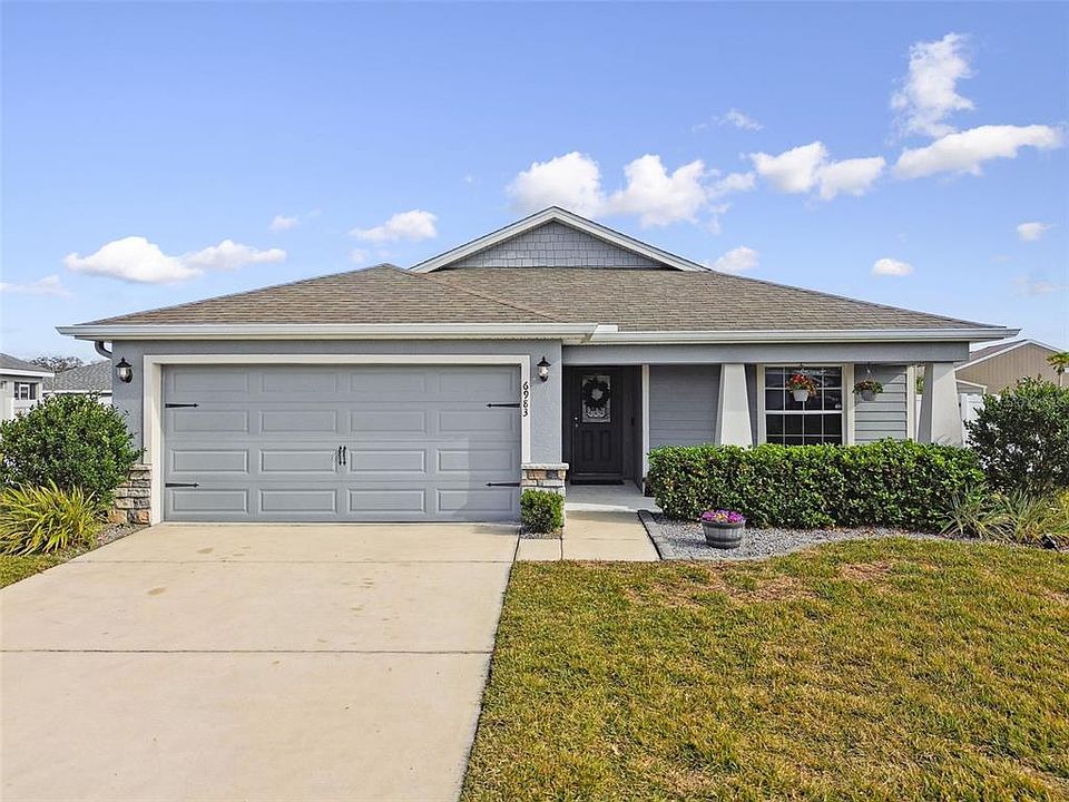 Welcome to this meticulously maintained, move-in-ready, 4-bedroom, 2-bath Craftsman-style home in the highly sought-after community of Stonebridge at Chapel Creek in Zephyrhills. Built in 2020, this nearly new home offers 1,711 square feet of heated living space and sits on an oversized lot of 8,592 square feet. Step inside to discover a spacious, open floor plan with soaring high ceilings and a welcoming atmosphere. The large primary suite is a true retreat, featuring a walk-in closet, a luxurious garden tub, and a separate walk-in shower. The modern kitchen boasts sleek black stainless steel appliances, and the dining and living areas are perfect for entertaining or family gatherings. Special touches throughout the home include ceiling fans in every room, a cozy built-in electric fireplace, and a charming farm-style pantry door. The exterior showcases a beautiful stone veneer façade, adding to the home’s curb appeal. The large, fully fenced backyard offers privacy and plenty of room for outdoor activities. The extended patio runs the length of the house, making it the perfect spot for barbecues, relaxing, or entertaining guests. Located just minutes from SR 54, Highway 301, and I-75, this home offers unbeatable convenience. Shopping, restaurants, hospitals, and more are all within easy reach. As a bonus, the community boasts resort-style amenities, including a zero-entry pool, cabana, playground, dog park, and nature trails, perfect for those who love an active lifestyle. Additional features include a transferable structural warranty (good for 5 more years), low HOA fees ($115/year), and low CDD fees ($1,750/year). Priced aggressively at $350,000, this home offers exceptional value compared to similar properties in the area and is perfect for first-time homebuyers, retirees, investors or anyone looking for a Turn-Key and move-in ready! Don’t miss out on the opportunity to own this gorgeous, well-maintained home in a highly desirable neighborhood. This property does qualify for USDA 100% financing as well!