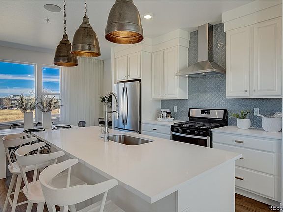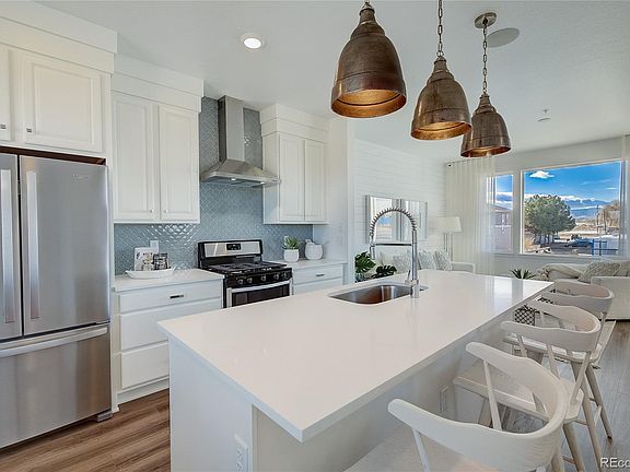 MODEL HOME FOR SALE * Ready Now ** Ask About ***INCREDIBLE ROLL-BACK RATES*** For a LIMITED TIME Through Builder’s Preferred Lender. WEST FACING. Located in Northwest Denver, live in Westminster Station at Pomponio Terrace. About 20 minutes north of downtown Denver. Lock and leave for your fun filled mountain weekend or stay local and enjoy the lively Northwest Denver restaurant scene, downtown Denver's sports & entertainment scene, and Bruz Beers an artisanal brewery located just around corner in the Midtown neighborhood! The tastefully designed END UNIT PRESTON plan offers an open concept, modern finishes throughout, 9' ceilings, and an abundance of natural light with its thoughtful window placements & mountain views from the kitchen, dining, living & primary bedroom! Designed to entertain, your stylish gourmet kitchen offers Whirlpool stainless appliances, 42 uppers with a white linen finish, and pure white Caesarstone countertops. The upstairs features a spacious master suite with vaulted ceilings, walk-in closet, and luxurious bath with double sinks and Euro-glass enclosed shower. A secondary bedroom + full bath, and laundry with upper cabinets conveniently located upstairs too. The entry level offers a home office. Enjoy the ease of parking in your home's 2-car attached garage. Additional highlights include 8' interior doors, custom lighting, central a/c, tankless water heater, & 2nd story balcony perfect for a grill, bistro table & chairs. Refrigerator, washer/dryer and landscape included. Easy to show, this townhome is move-in ready, lives large and feels like home! Photos may be of a Model and Not the Actual Property. HOA's snow removal includes sidewalks adjacent to streets and alleys. Taxes shown are county's Estimated 2023 amount.