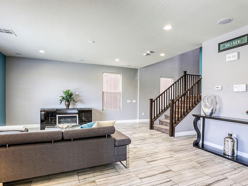 Beautifully upgraded 3 bedroom + loft on oversized lot in Mountains Edge. Open floorplan with tile throughout, upgraded kitchen with stainless steel appliances, 9ft ceilings on both floors, and surround sound. Spa like master bath w/ large walk in shower, super sized walk-in closet. Gorgeous low maintenance backyard features turf, BBQ stub, and covered patio. Pristine and ready to move in!