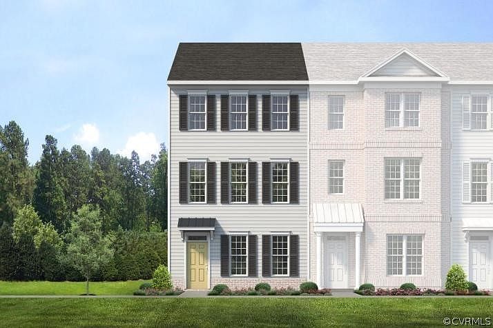 Welcome to the Brook by Main Street Homes! CURRENTLY UNDER CONSTRUCTION! This Energy Star certified 3 story end unit townhome offers 4 bedrooms, 3.5 baths, oak stairs, rear entry 2 car garage, tankless water heater, rear deck, low maintenance vinyl siding and a charming, covered stoop. The first floor includes a large bedroom, full bathroom, and a coat closet. The second floor open concept offers a large great room, dining room, and a gourmet kitchen complete with granite countertops, ceramic tile backsplash, stainless steel appliances, and an oversized 8' island. The third floor includes an owner's suite with an ensuite bathroom with ceramic tile shower, double bowl vanity and 2 walk-in closets, 2 additional bedrooms, full bathroom, and laundry room. Cosby Village amenities include a clubhouse with fitness center, a resort style pool, dog park, community garden, paved sidewalks with pocket parks, and walking trails. Cosby Village will give you low maintenance living right off Hull Street Road and Otterdale Road in a top ranked school district near shops and dining. Cosby Village has it all! Photos represent the floor plan, but are not of this actual home. HOME UNDER CONSTRUCTION