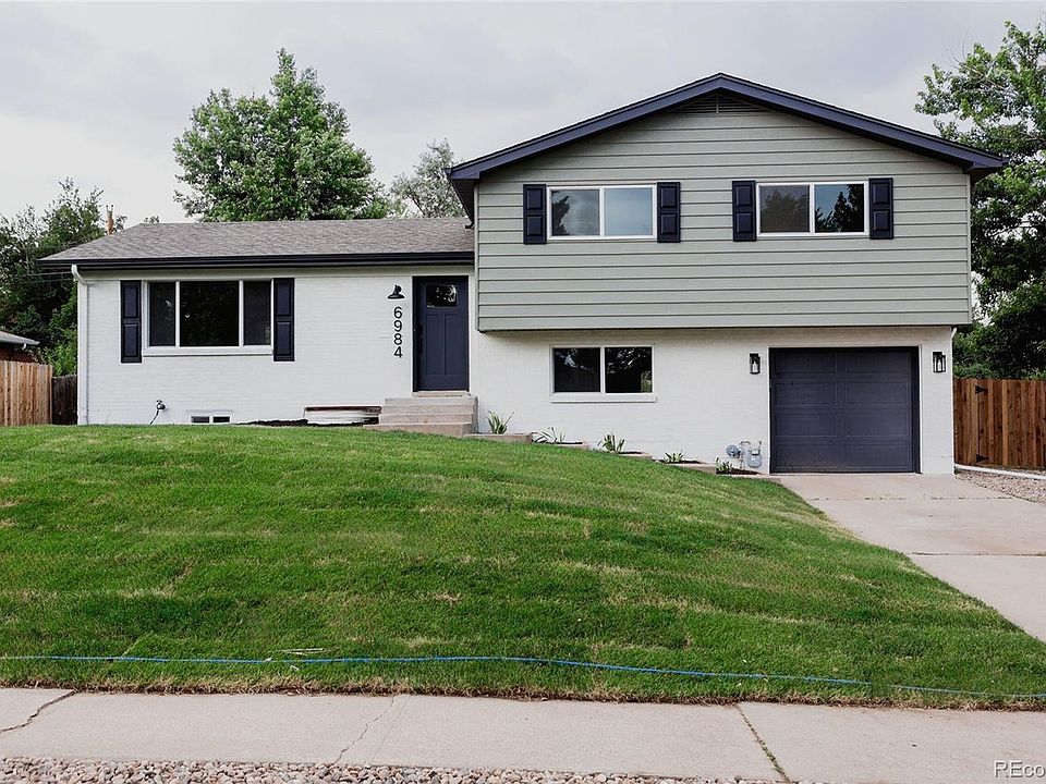 Welcome to 6984 S Clarkson Street- A thoughtfully redesigned home in the desirable neighborhood of Southglenn. This five-bedroom, three-bathroom house offers a generous 2,492 square feet of interior space, ideal for both comfort and functionality. The upper level includes two guest rooms, a primary suite, and second bathroom. The lower level features an office and/or bedroom, a 3/4 bath, laundry room, and the garage entrance. The basement offers one additional bedroom, the mechanical room, and a theater room equipped with a built-in speaker system and projector.