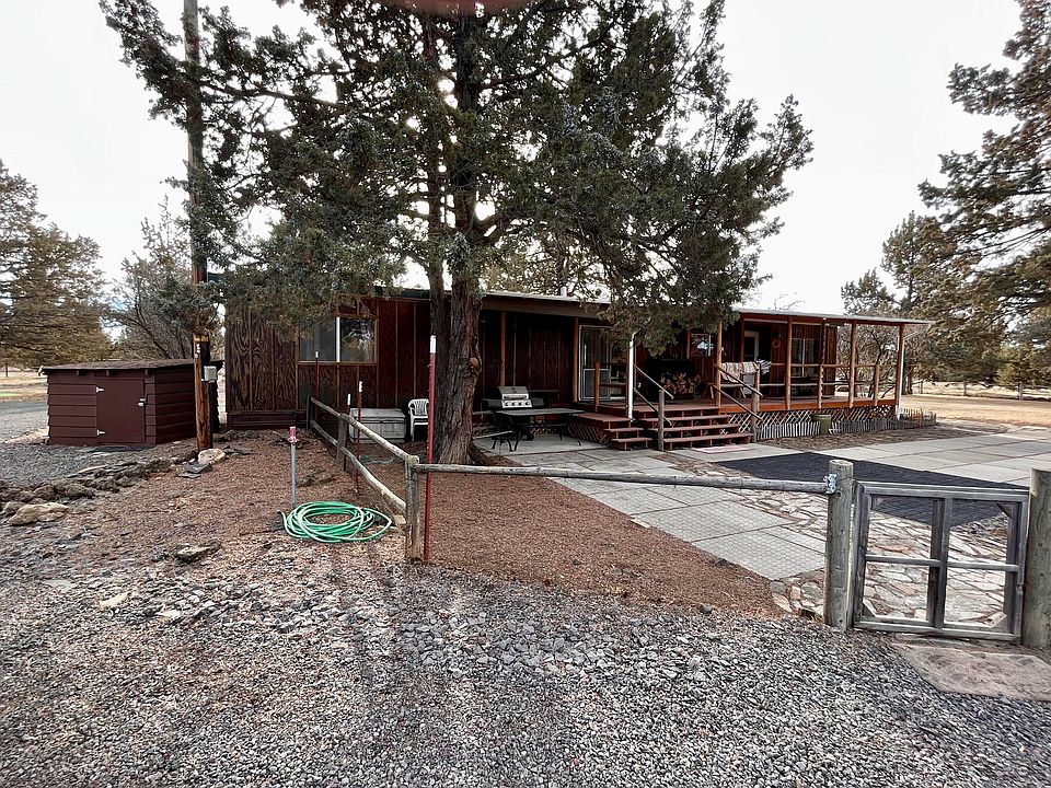 This property located in the heart of Crooked River Ranch. It offers 5 acres on a corner lot. This cozy home says welcome home with the front of the home all wrapped with a covered front decking. This home has bamboo floors throughout. Living room /Great room has a lot of room for comfort time and spreading out. Kitchen has an open island. Also open to a quiet area with the wood stove. Off kitchen addition room for dinning table .2 full baths with 2 Bedrooms The 5 acre parcel includes a detached double car garage with work area. New pole barn ,corrals,Animal Stalls, and more. storage. RV Parking with electric hook up. Easy access to drive your vehicle in and out. Home has been well care for. It has bamboo flooring, East floor plan to get around. Wood burning stove to heat up the home on those cozy , chilly nights . Large kitchen with a kitchen island. Easily a great space to entertain. Enjoy all the amenities CRR offers $510.00 yearly
