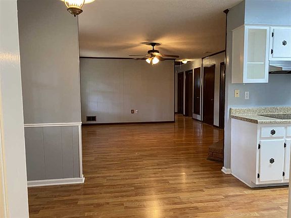 Come and check out this roomy 3 bedroom 2 bath home! The home has been freshly painted with a neutral grey, white cabinets and wood laminate floors throughout. This home has a great room with a wood burning fireplace. There is a family room/dining room combo to enjoy a house full of company in! Enjoy the back yard with a chain link fence and a covered patio.