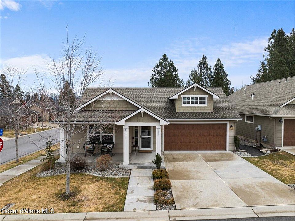 Immaculate, single story living in a gated section of the popular CDA Place subdivision. This corner lot rancher features 1.780 square feet, 3 bedrooms, 2 bathrooms & a two car attached garage. Inside you'll find an open concept living space with lots of windows, gas fireplace, and spacious master suite. Home also has been updated with new interior paint and flooring. Enjoy a park-like view of the community green space from the large back deck or stroll on down to the community garden beds or the surrounding walking/bike trails. These low-maintenance living homes include lawn care and snow removal.