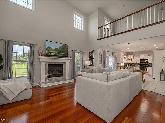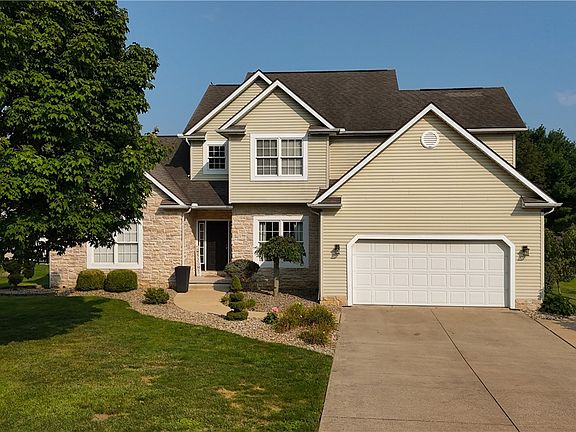 Welcome home to this incredibly beautiful, tastefully designed custom built one owner home that you would be proud to call “home”! As you enter thru the welcoming front porch you'll notice all of today's hottest, sought after colors & a large open floor plan! The foyer leads to the formal dining room and impressive great room. With the high ceilings, beautiful fireplace , solid cherry hardwood floors, lofted staircase, views of amazing rear yard and openness to eat in kitchen…the great room boast both charm and comfort. The completely updated kitchen is a chefs dream with granite countertops, beautiful tiled backsplash, custom cabinetry, built in buffet bar, dining area & glass doors to the outdoor living area with gorgeous views! The first floor owners suite is large with cathedral ceilings, a walk in closet, and spacious master bath. Second floor offers spacious bedrooms and a bonus room which could opt out to office/ study area or additional bedroom! With the lower level being a walk- out the natural light and high ceilings make for great entertaining! A bar area with open gaming area plus family room with views of the soaring rear yard and step out access to the patio invites casual living for you and your guest! Call today for your private showing as a home of this stature will not last in today's market!