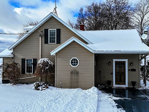 Set on 4.51 acres, this beautifully updated 3,980 sq ft home offers exceptional space, comfort, and versatility—both indoors and out. The open-concept main level is ideal for entertaining, featuring refinished original hardwood floors, a massive dining room with cove ceilings, and seamless flow into the living room and kitchen. The home offers 5 bedrooms, 2 full baths, a dedicated office, pantry, mudroom and convenient main-floor laundry, providing flexibility for today’s lifestyles. The finished lower level expands your living space with a second family room, bonus room, additional pantry, workshop, and mechanical area. A geothermal heating and cooling system delivers efficient, year-round comfort. Outdoor living truly shines with a three-season sunroom, multiple decks, built-in grill, drinking fountain, and peaceful views of beautifully landscaped grounds filled with mature shade trees and perennials. The three-car detached garage includes a workshop, loft, and finished bonus room, offering endless possibilities for hobbies, storage, or guest space. A circular driveway provides ample parking. Gardeners and hobbyists will love the large shed with potting area, chicken coop, and fenced raised garden area. The property is completed by a stunning, fully fenced swimming pond, featuring a stone patio, floating dock, aerator system, pump-fed water tower, and a rock-lined stream flowing gracefully into the pond. This exceptional property offers the perfect blend of privacy, functionality, and move-in-ready living—a rare opportunity to enjoy nature, space, and comfort all in one. Some images AI generated.