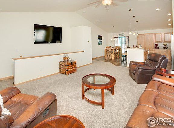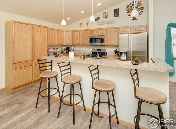 Like new charming ranch on quiet corner lot in East Wellington. The living room/kitchen is open plan w/ vaulted ceilings, an included 65" TV, island/bar, SS gas stove, microwave, and fridge. The main floor is complete with 3 bedroom, 2 baths and laundry. The over-sized, insulated, 2-car garage with 8' door is ready for your toys or truck and includes 220V service. The fully fenced yard has a full length patio, new 12 x 13 ft shed and trailer parking with off-street access.