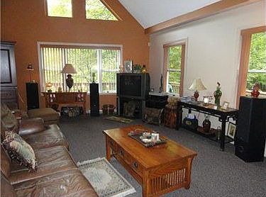Awesome 1.5 story chalet nestled on 3.2 acres amidst pines and trees / 2 level decks afford