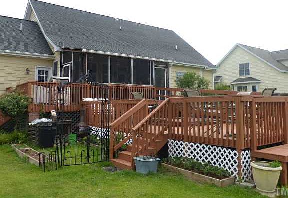 HUGE price reduction! No city taxes! No HOA! Wonderful home with so much to offer! 4BR/3full baths, with many custom features. Granite counters, ceramic tile, hardwoods,trey ceilings,crown molding, wood shelving in closets/pantry, 2car garage,deck, screened porch, and hot tub. Home has 3BR/2full baths down, with amazing bonus rm, office, large BR, and full bath upstairs. A floor plan that fits many needs! Fiber cement siding ext with yard large enough to do some gardening. 20 minutes to downtown Raleigh!