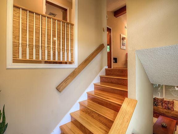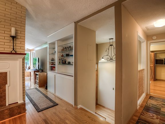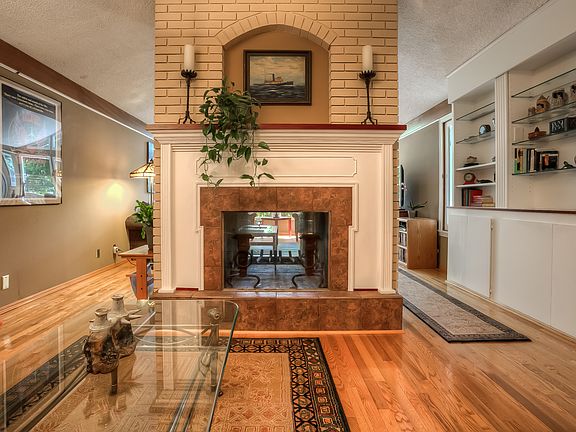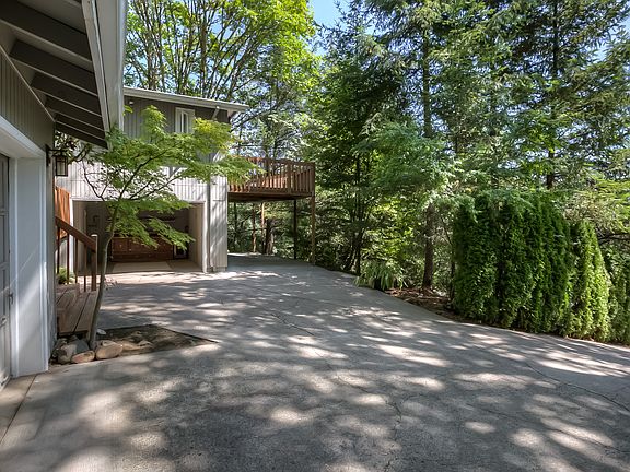 Accepted Offer with Contingencies. Wonderful use of wood/glass in this NW contemporary home. Vaulted beamed ceilings, gorgeous wood floors & large windows. Formal Living/Dining share a double sided fireplace with seasonal view. Family and media room with 2nd fireplace down. Private outdoor living space on the screened sun porch. Covered deck and stone patio, great for entertaining. Additional hobby/work room downstairs. Easy maintenance yard, 3rd bay open door garage and storage 11.7x15.4. Room for RV or boat. Turnaround at top of drvieway.